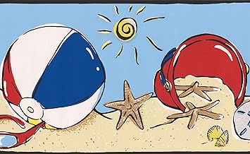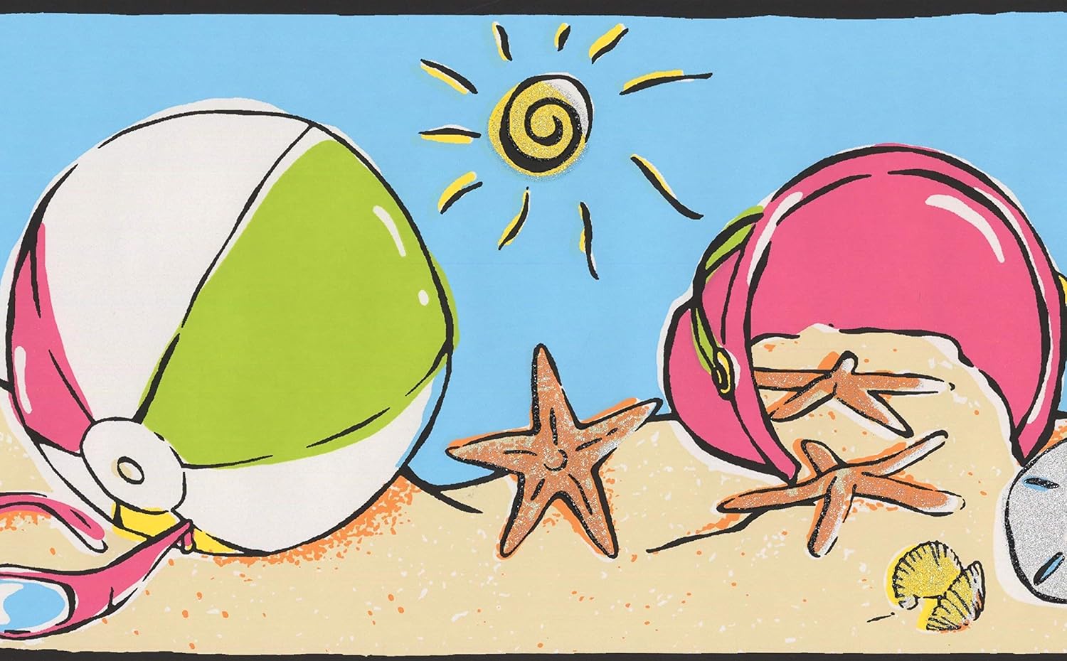 Beach Sand Castle Ball Sunglasses Shovel Sun Sky Blue Wallpaper Border For Kids Bedroom Bathroom Roll 15 X 7 Amazon Com
