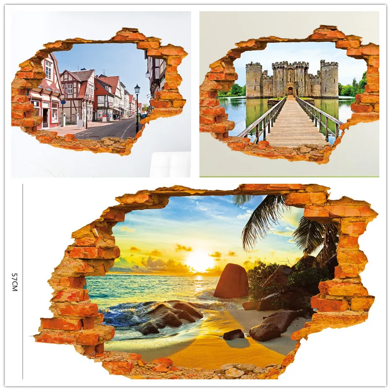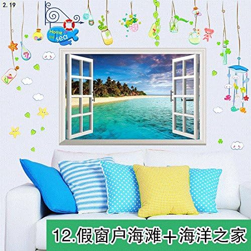 Amazon Com Ghaif 3d Wall Sticker Wallpaper Posters Self Adhesive Wallpaper Bedroom Living Room Background Wall Decoration Ideas Leave The Window Watertight Door Decals 12 Fake Windows Ocean Beach House King Home