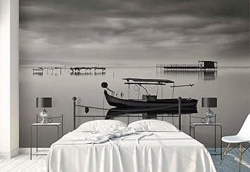 Photo Wallpaper Wall Mural Weathered Docks Fishing Boat Hut Theme Beach Coastal Xl 12ft X 8ft 4in Wxh 4 Pieces Printed On 130gsm Non Woven Paper 1x 1263176v8 Amazon Com