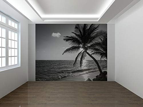 Palm Tree On The Beach Black And White Photo Wallpaper Wall Mural 40060338 130gsm Budget Xxl 300cm Wide X 240cm High Amazon Co Uk Kitchen Home