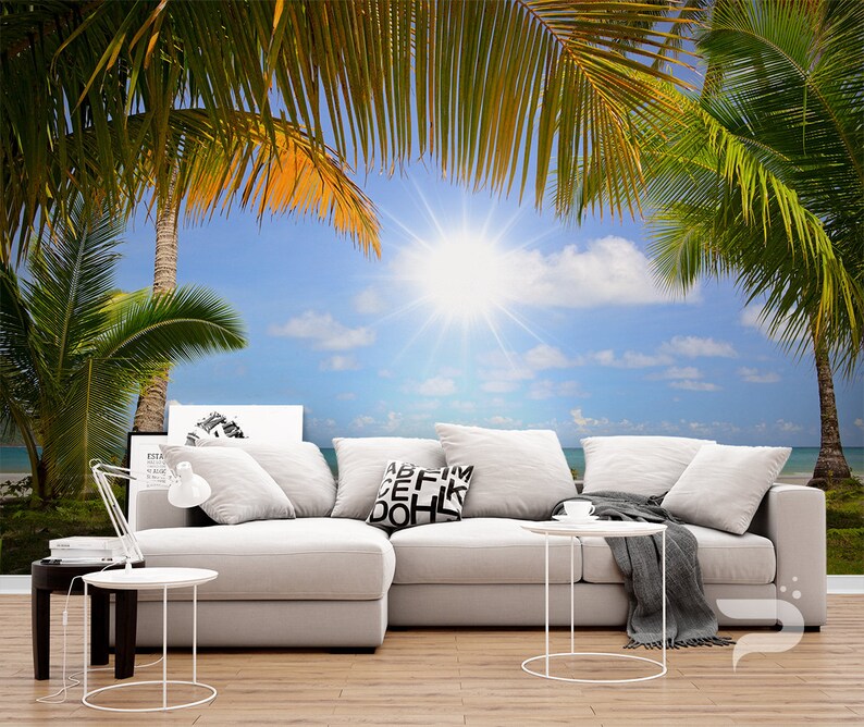Amazon Com Great Art Large Photo Wallpaper Wallpaper Palm Trees Beach Decoration Caribbean Bay Tropic Paradise Nature Island Palms Tropical Isle Landscape Image Decor Wall Mural 132 3x93 7in 336x238cm Posters