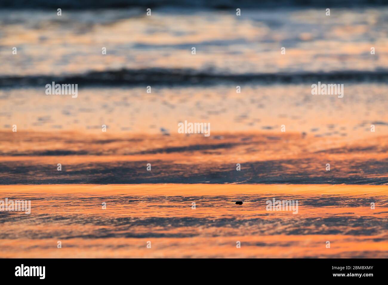 Sunset On The Seashore Gentle Waves Roll Onto The Beach Sand With Blurred Background Use As Abstract Nature Backdrop Wallpaper Stock Photo Alamy