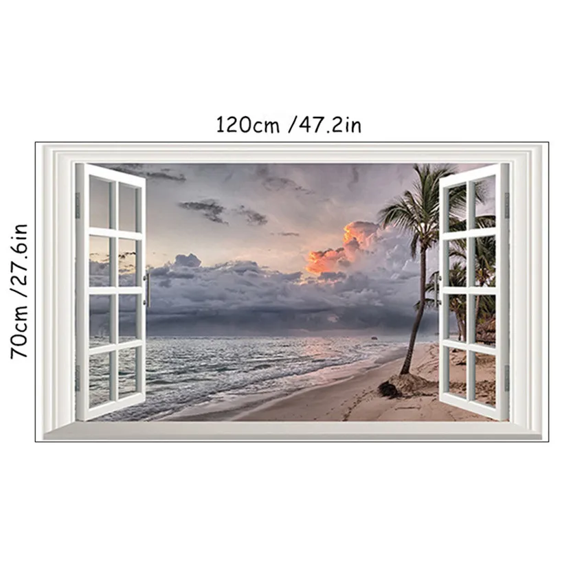 3d Fake Window Sunrise Ocean Beach Wall Sticker Vinyl Mural Decal Wallpaper