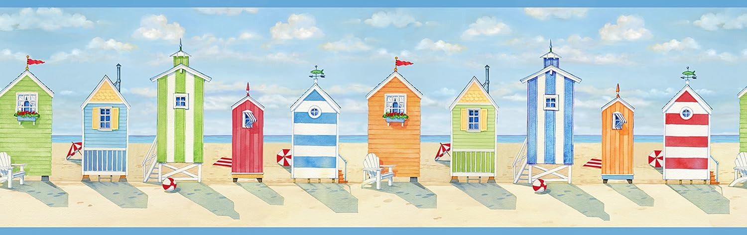 Lighthouse Beach Scene Red White And Blue Edges Wallpaper Border 237b52654